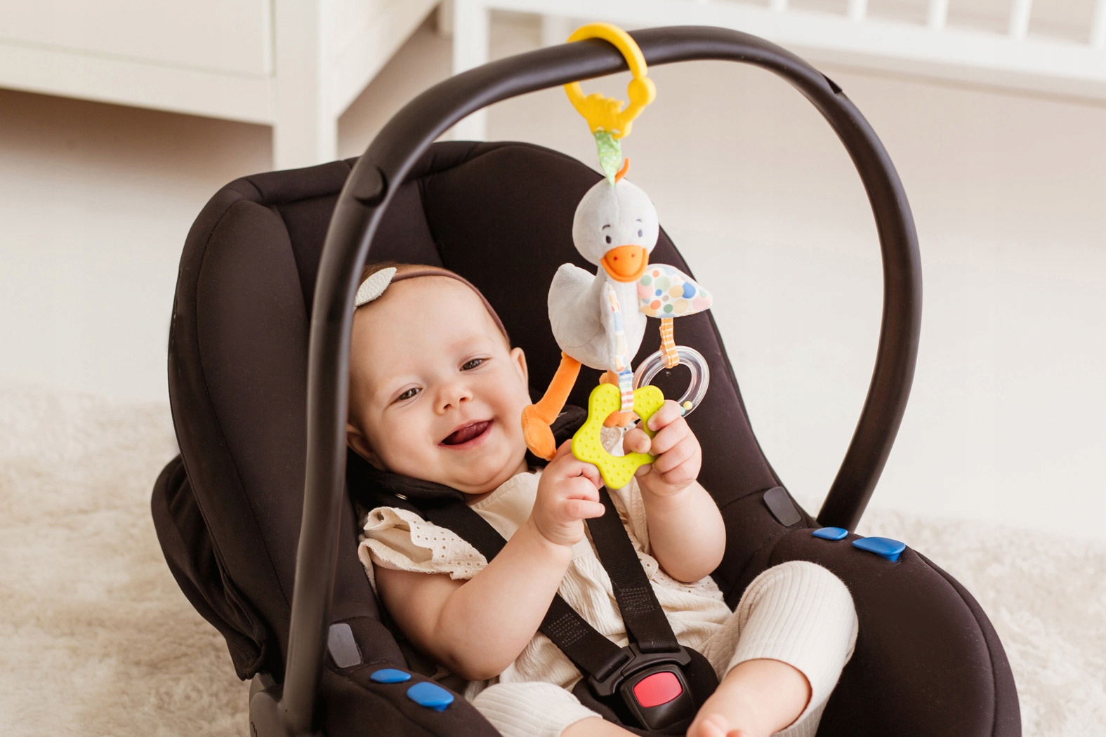Компактна іграшка, яка чудово підійде в будь-якій ситуації та розважить малюка. Качечка виготовлена з матеріалів різної текстури, що стимулює відчуття дотику малюка, позитивно впливаючи на розвиток його пізнавальних здібностей. Крильця качки прикрашені двома додатковими іграшками, прорізувачем з виступами і брязкальцем, наповненим різнокольоровими кульками. Практична ручка дозволяє легко прикріпити іграшку будь-де. Виріб призначений для дітей з дня народження.