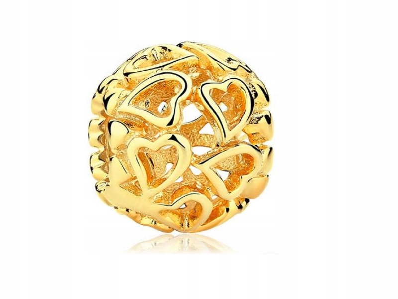 Елегантний шарм з жовтого позолоченого срібла, в тон модульним браслетам, у формі кулі, прикрашений ажурним візерунком із сердечок.