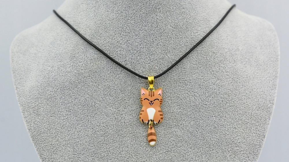 Кулон із КОТОМ, кулон із хвостиком + чорний вощений шнурок