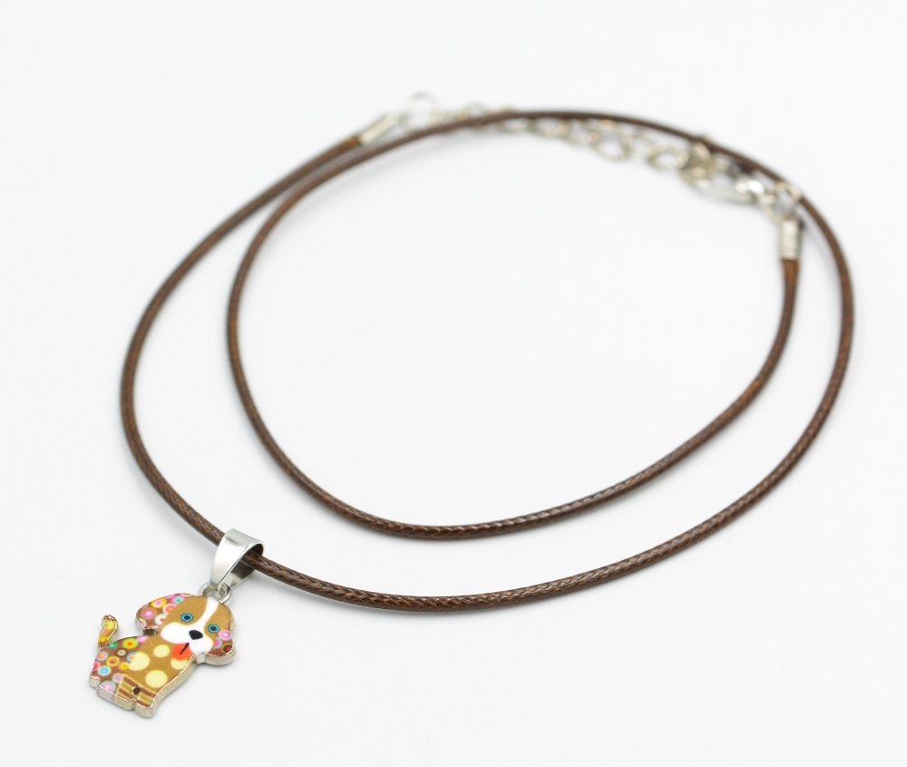 Кулон кулон СОБАКА, вощений шнурок КОРИЧНЕВИЙ