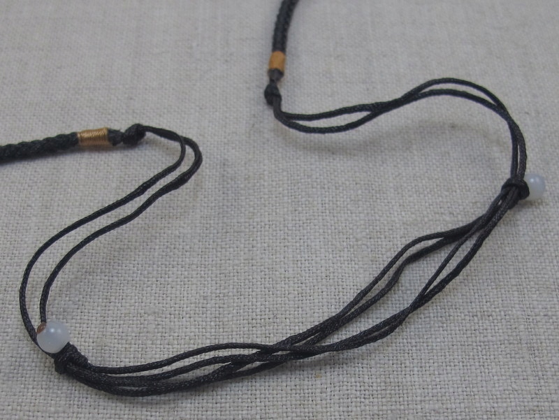 Чорний камінь підвішений на плетеній мотузці з декоративними плетіннями