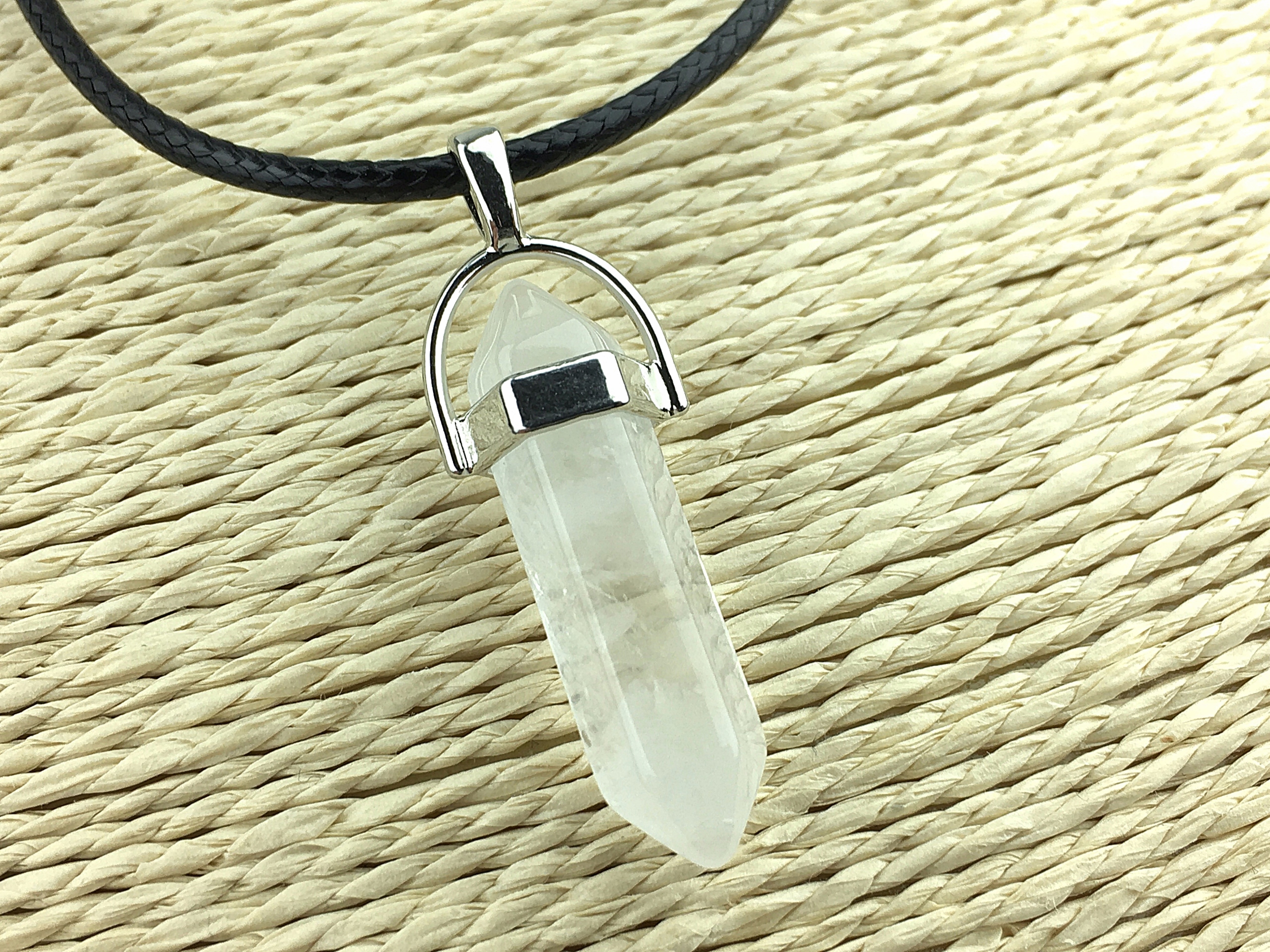 Підвіска на мотузці з натуральним каменем Гірський кришталь. Ідеально підходить як для жінок, так і для чоловіків. Чудове доповнення до повсякденного стилю.