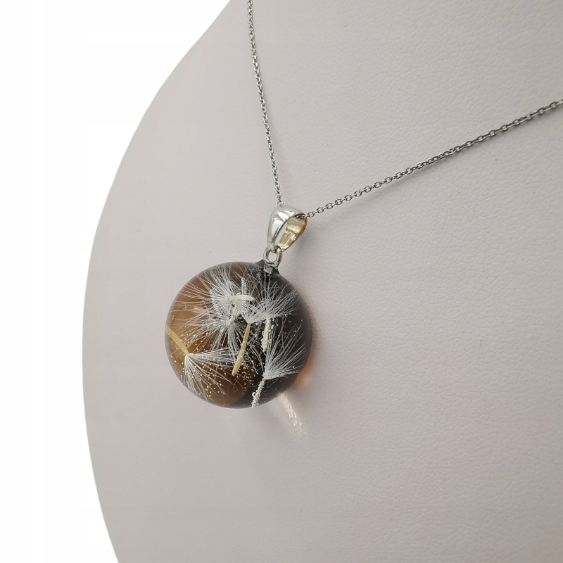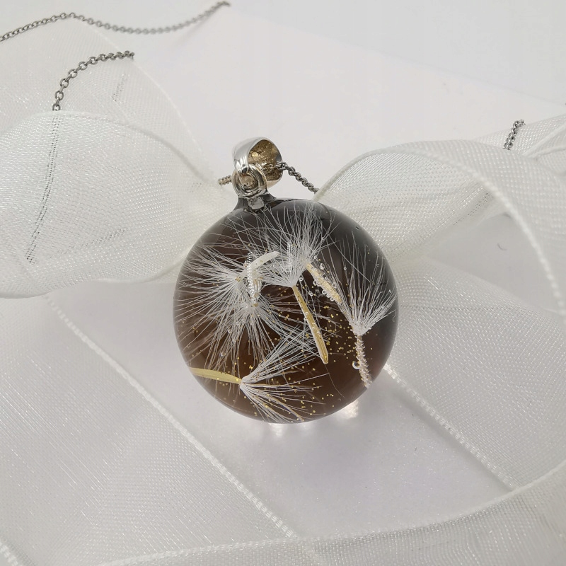 Оригінальна підвіска з насінням кульбаби, залитими в найякіснішу смолу, стійку до ультрафіолетового випромінювання.