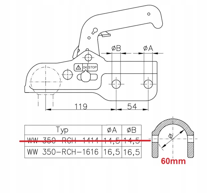 Кульова зчіпка Winterhoff: WW 350 -RCH-1616