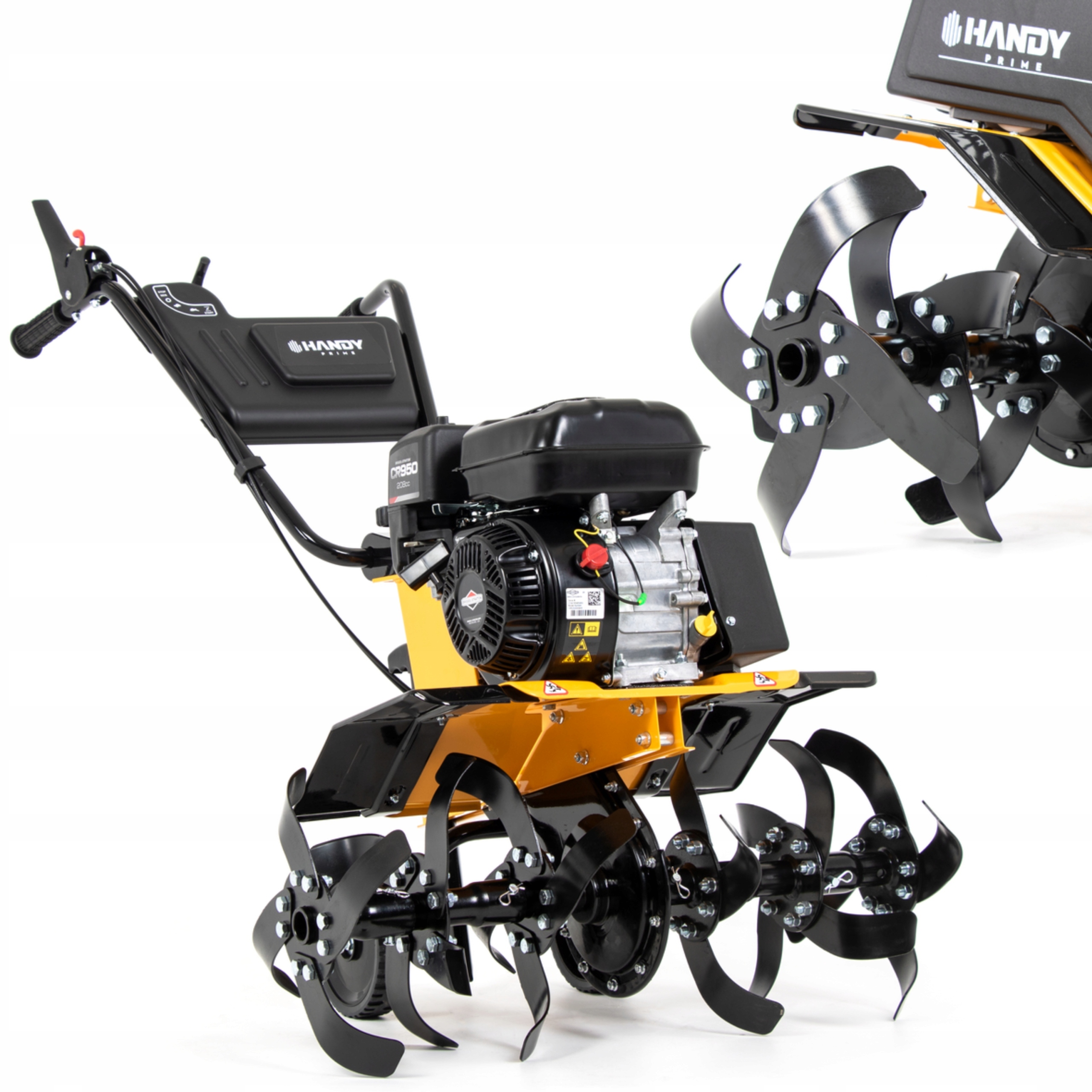 Бензинова фреза Handy Prime NG950BC дозволить вам обробляти та розпушувати ґрунт за допомогою спеціальних ножів, які приводяться в рух завдяки 4-тактному двигуну відомої, всесвітньо відомої компанії Briggs & Stratton серії CR950 (литий). залізна гільза). Він має об’єм 208 см3 і потужність 4,2 кВт. Робоча ширина фрези 36-55-85 см, максимальна робоча глибина 35 см. Одна передача вперед і назад разом з міцними опорними колесами дозволяють вільно і комфортно пересуватися з пристроєм. Регульована вертикально-горизонтальна ручка позитивно впливає на комфорт оператора. Сталевий корпус бензинової мотоблока Handy Prime NG950BC гарантує високу механічну стійкість техніки, яка необхідна, якщо ви плануєте придбати її на довгі роки.