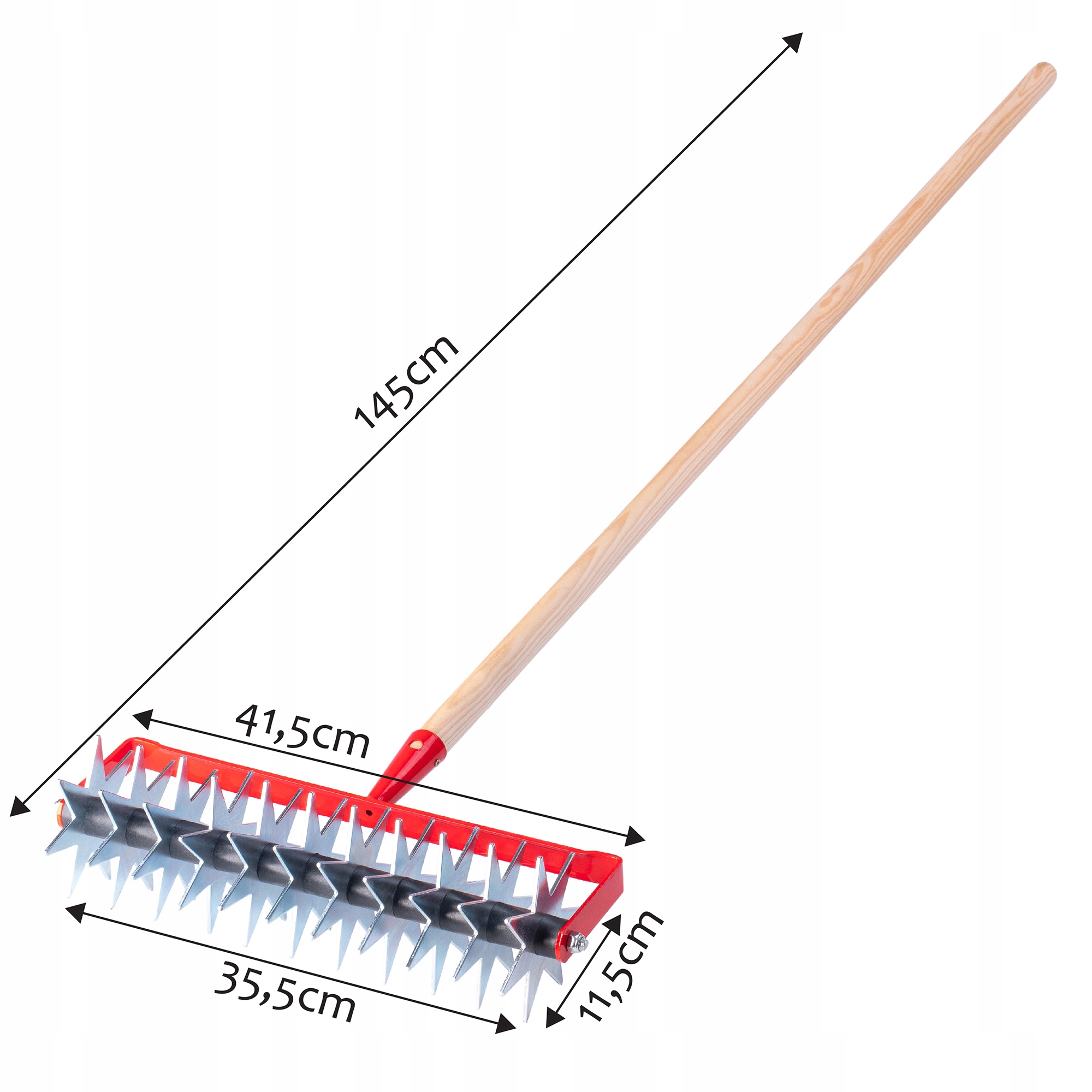 Садовий предмет оснащений дуже довгою ручкою з соснового дерева. Завдяки цьому інструмент дуже легкий і зручний, добре лежить в руці і зручний під час виконання завдань. Крім того, висота ручки дозволяє зберігати вертикальне положення тіла, а отже, запобігає надмірній втомі м'язів і суглобів.