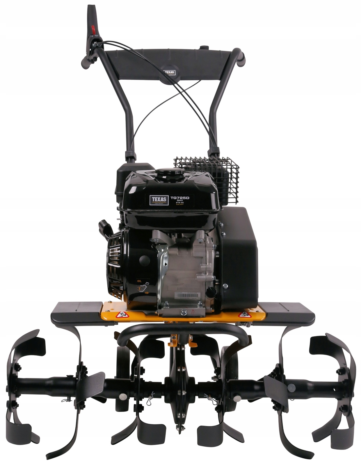 Бензинова фреза Texas TX 612TG - це дуже потужне обладнання, створене для ефективної, але, незважаючи на свої розміри та можливості, комфортної роботи. В основі його роботи лежить 4-тактний двигун Powerline TG720 об'ємом 212 см3 і потужністю 4,2 кВт з двома вихідними валами. Ножі рухаються зі швидкістю до 110 обертів на хвилину, а користувач може регулювати робочу ширину до 36, 55 або 85 см. Максимальна глибина розпушування, яку можна досягти за допомогою цієї моделі, становить 33 см. Виробник застосував ряд рішень в мотокультиваторі бензиновому Texas TX 612TG для підвищення комфорту роботи, що вкрай важливо з огляду на вагу пристрою, яка становить 59,5 кг. Рукоятку румпеля можна нахиляти як вертикально, так і горизонтально, а два суцільних транспортних колеса та одна передача переднього та заднього ходу дозволяють легко маневрувати обладнанням