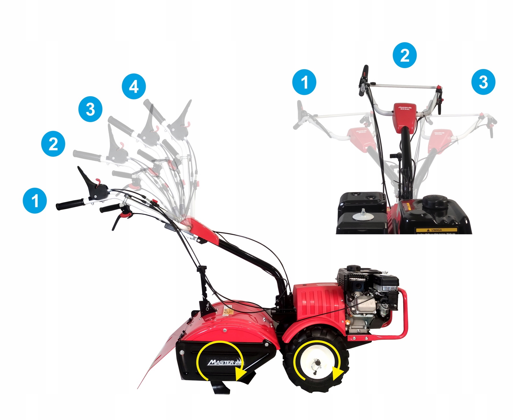 Ручка регулюється в двох площинах. Його положення можна вільно регулювати відповідно до потреб оператора та умов роботи з точки зору його регулювання.