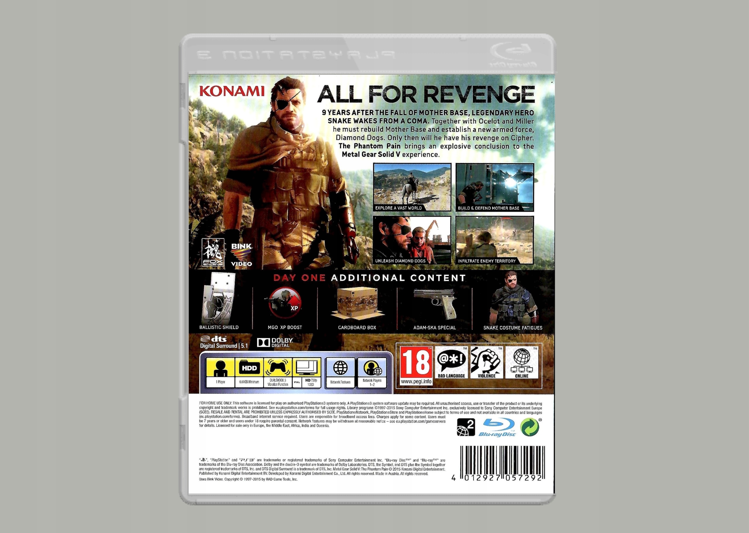 Оплачивая «культова гра для PS3 METAL GEAR SOLID V THE PHANTOM PAIN — все для REVENGE» данный товар из каталога «Sony PlayStation 3 (PS3)» вы можете быть уверены, что после оформления заказа, доставки в Украину, вы получите именно то, что заказывали, в оговоренные сроки и европейского качества.