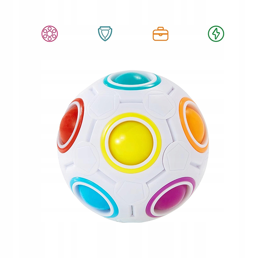 - 🌈 - 【Веселкова куля-головоломка】: цей тривимірний круглий пазл має 12 отворів і 11 кольорів м'ячі. Ці кульки можна переміщати з однієї лунки в іншу. Ваша мета — зіпсувати кольорові кульки, а потім придумати, як помістити їх назад у зовнішнє кільце відповідного кольору.