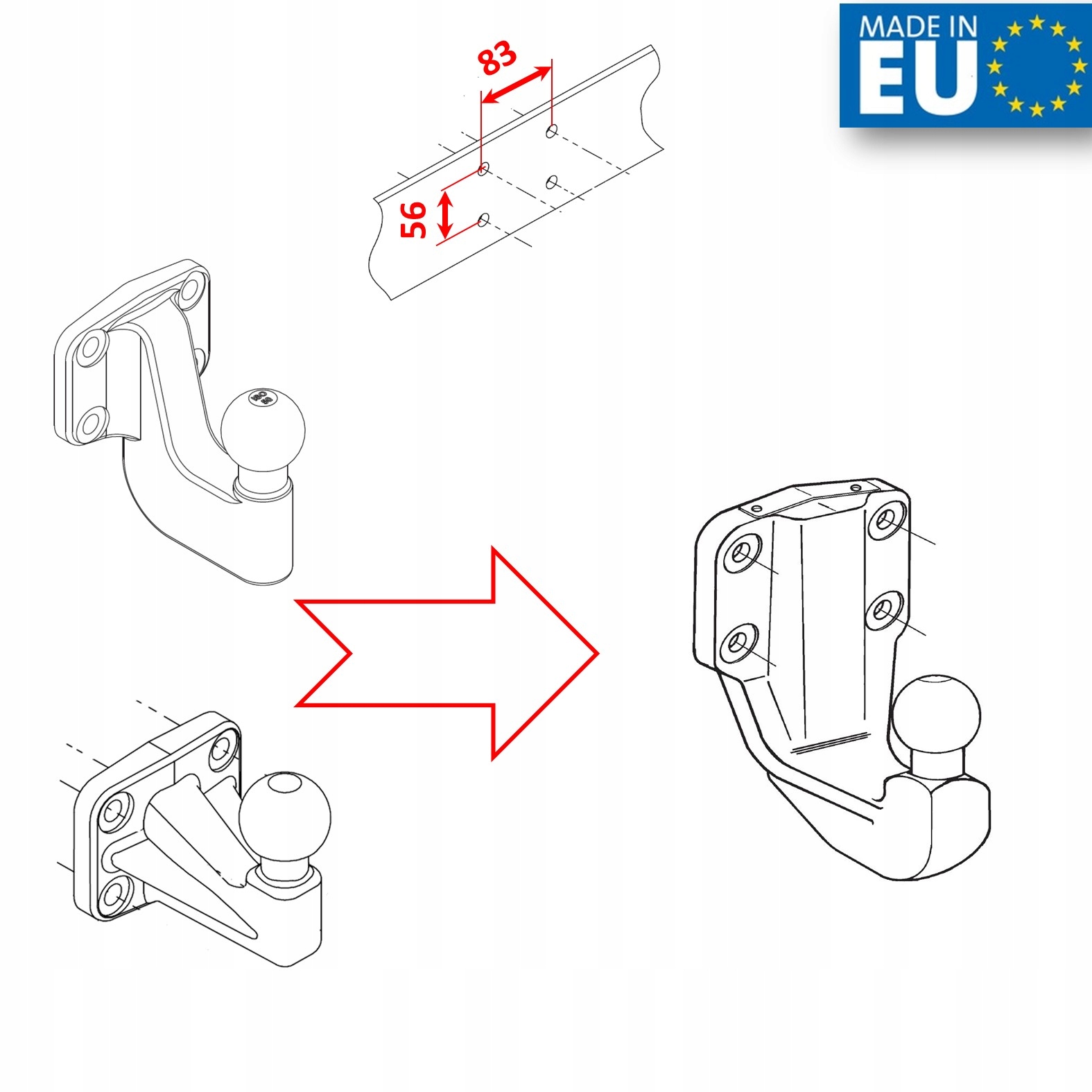 М'яч універсальний - підходить для будь-якого автомобіля, оснащеного фаркопом, пристосованим для кріплення кулі на чотирьох гвинтах з відстанню 83х56 мм.