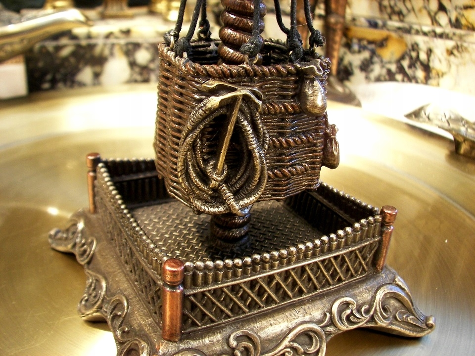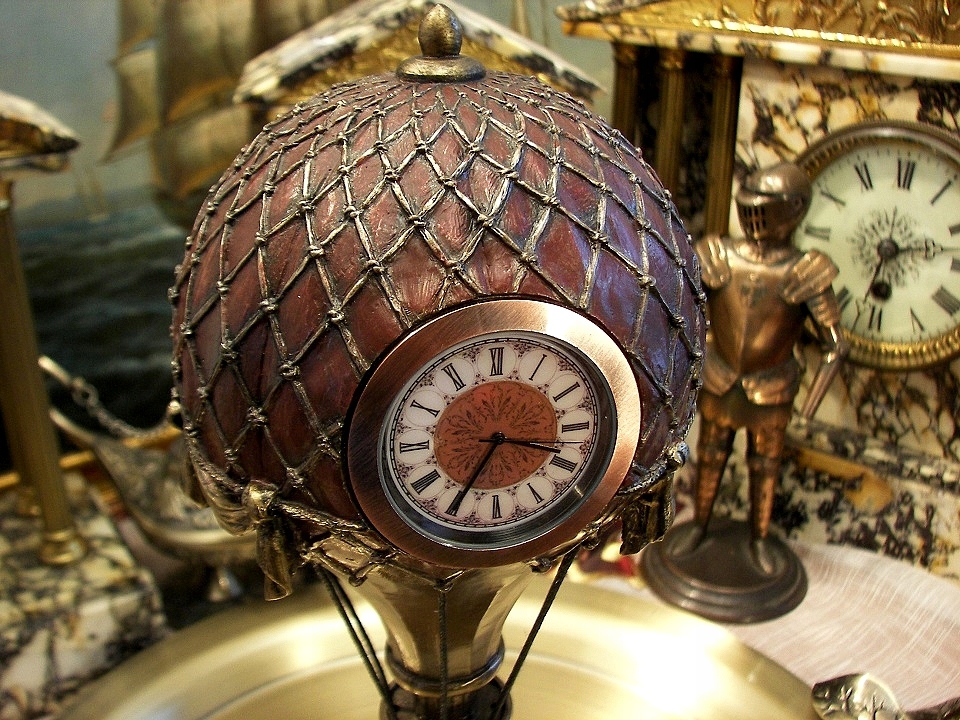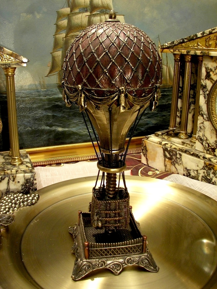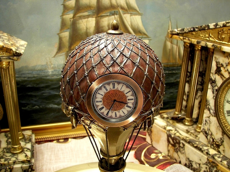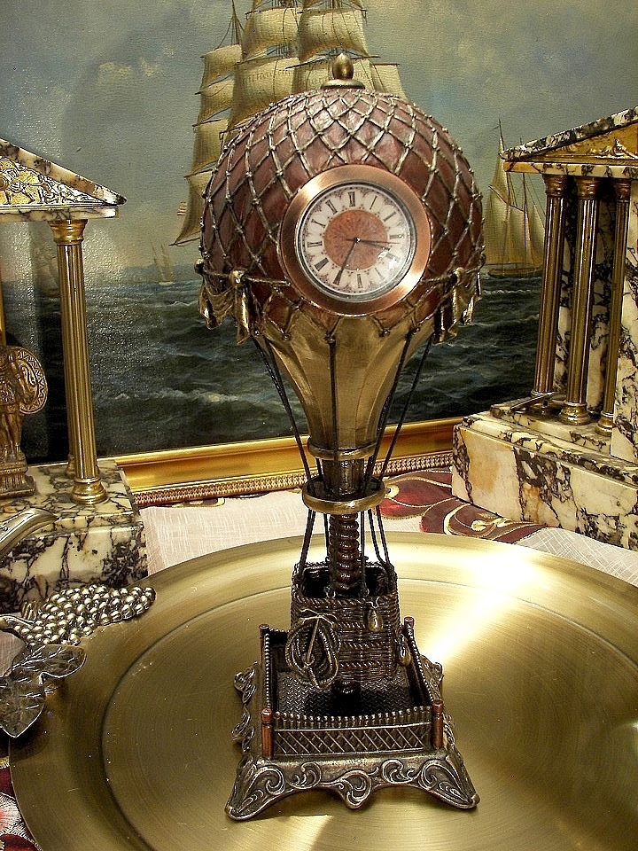 Запрошую придбати чудову річ, яка нагадує атмосферу роману Жуля Верна.Повітряна куля в стилі стімпанк, з усіма деталями, немов зі сторінок «Таємничої експедиції», а також годинник, який символічно нагадує про плин часу. Предмет набагато краще виглядає в природі. Бренд Veronese гарантує якість і зовнішній вигляд. Вся річ виготовлена з матеріалу полірезин, покрита бронзою, латунню, розписана вручну. Предмет ідеально підходить для трофея або призу в конкурси повітряних куль. Чудова ідея для оригінального подарунка. А присвята обов'язково підніме свій ранг.