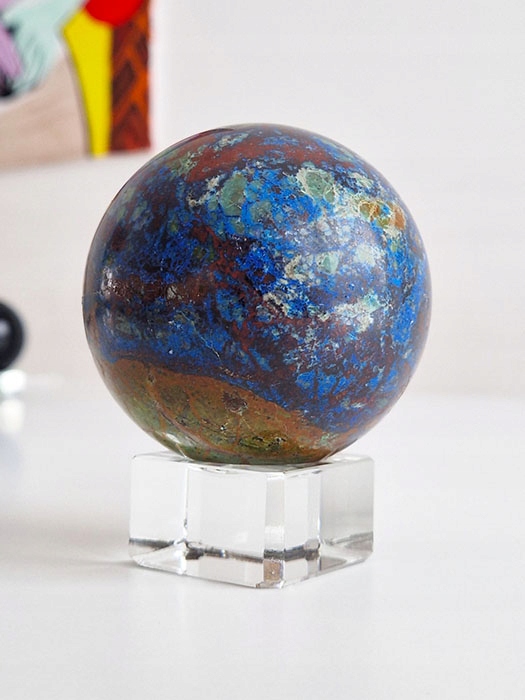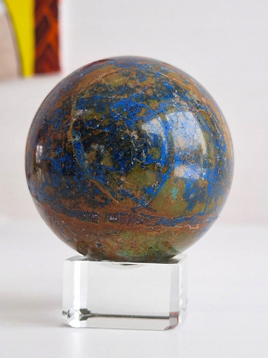 Куля хризоколла натуральний камінь з основою 550г 1 шт