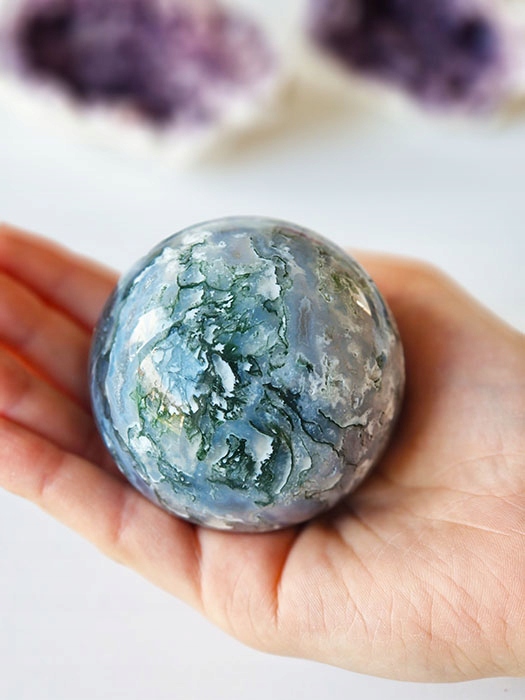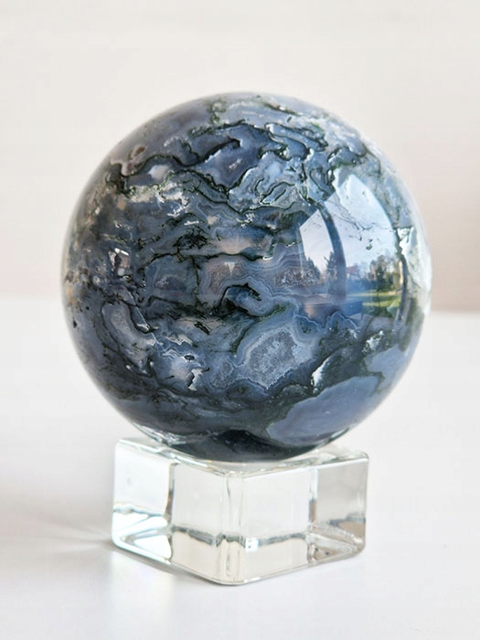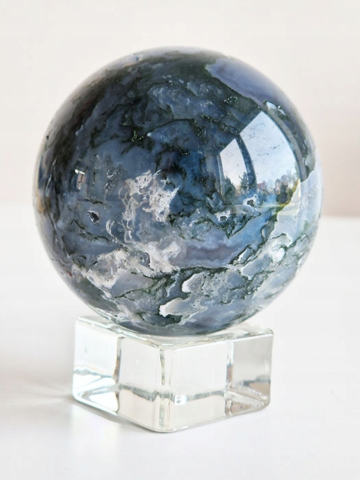 Куля моховий агат натуральний камінь з підставкою 372г 1 шт
