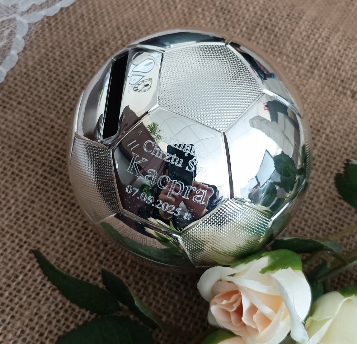 Сувенір до Першого Причастя - футбольна скарбничка з гравіюванням