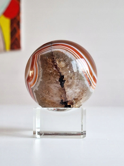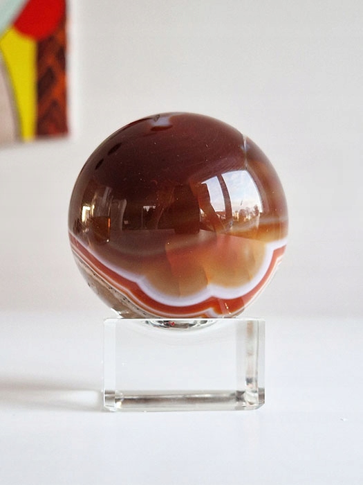 НАТУРАЛЬНИЙ КАМІНЬ САРДОНІКС, ПОЛІРОВАНА КУЛЯ З ПІДСТАВКОЮ