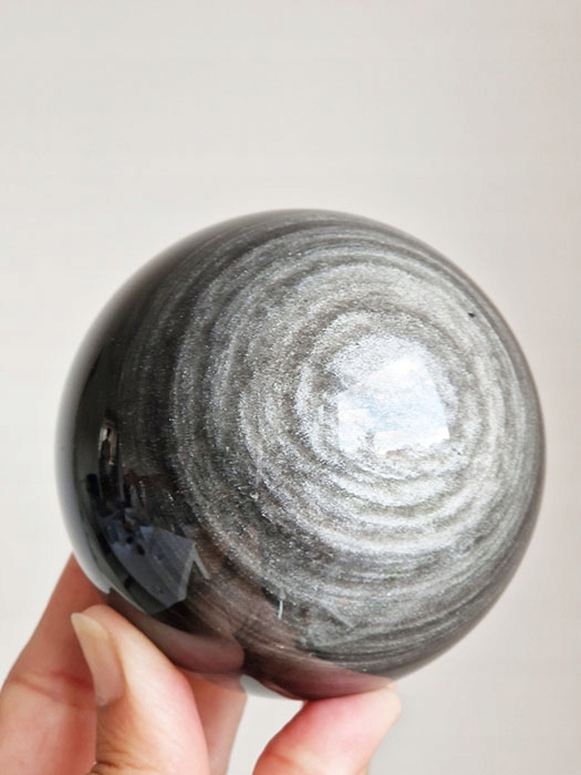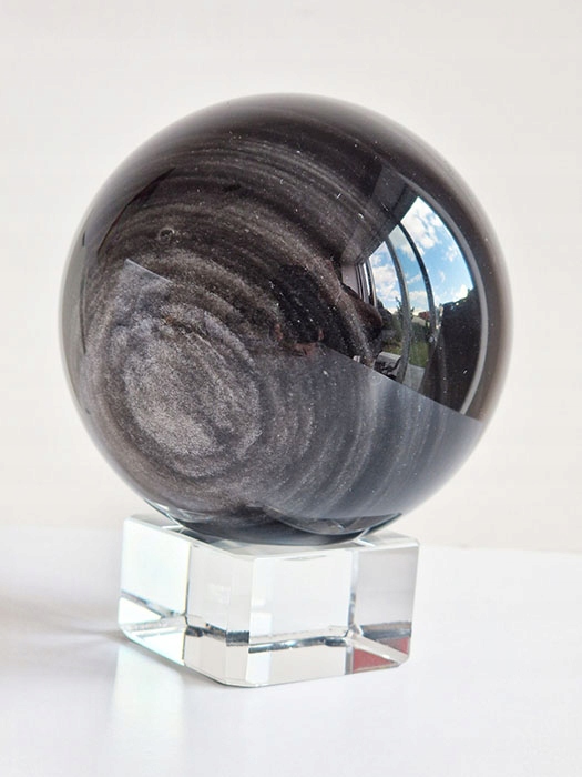 ПОЛІРОВАНА КУЛЯ З СРІБНОГО ОБСИДІАНУ, НАТУРАЛЬНИЙ КАМІНЬ З ПІДСТАВКОЮ
