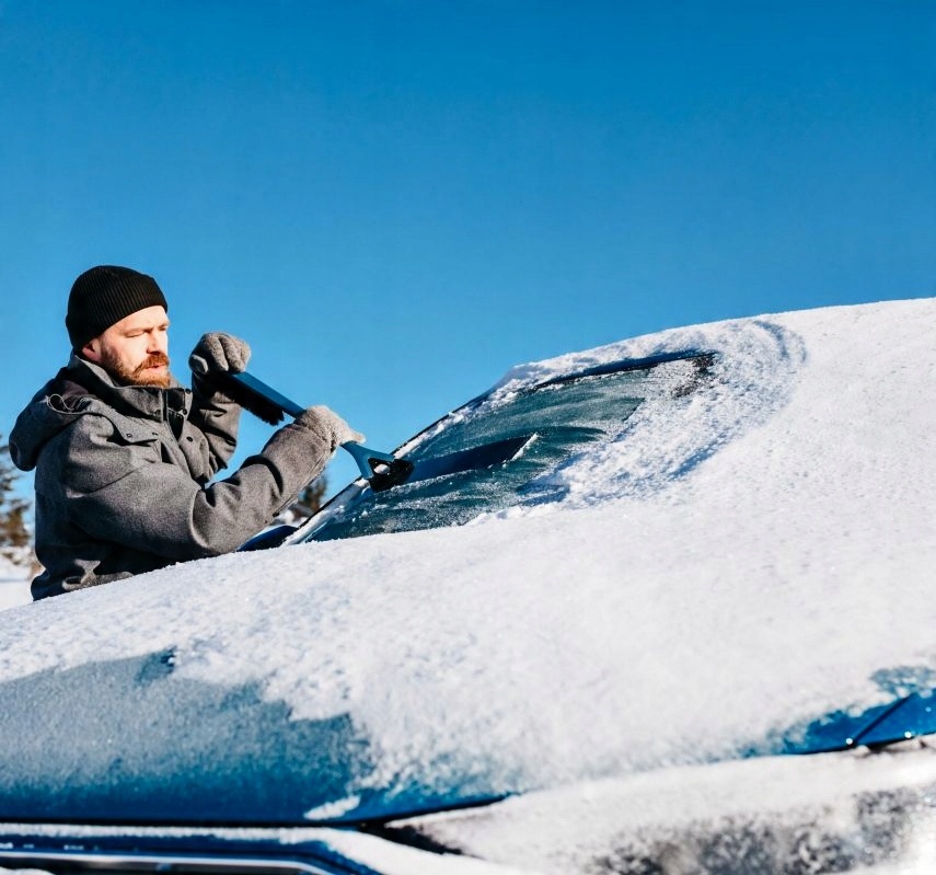 - Довга ручка та густа щітка щетини ідеально підходять для видалення льоду та снігу з вашого автомобіля.
