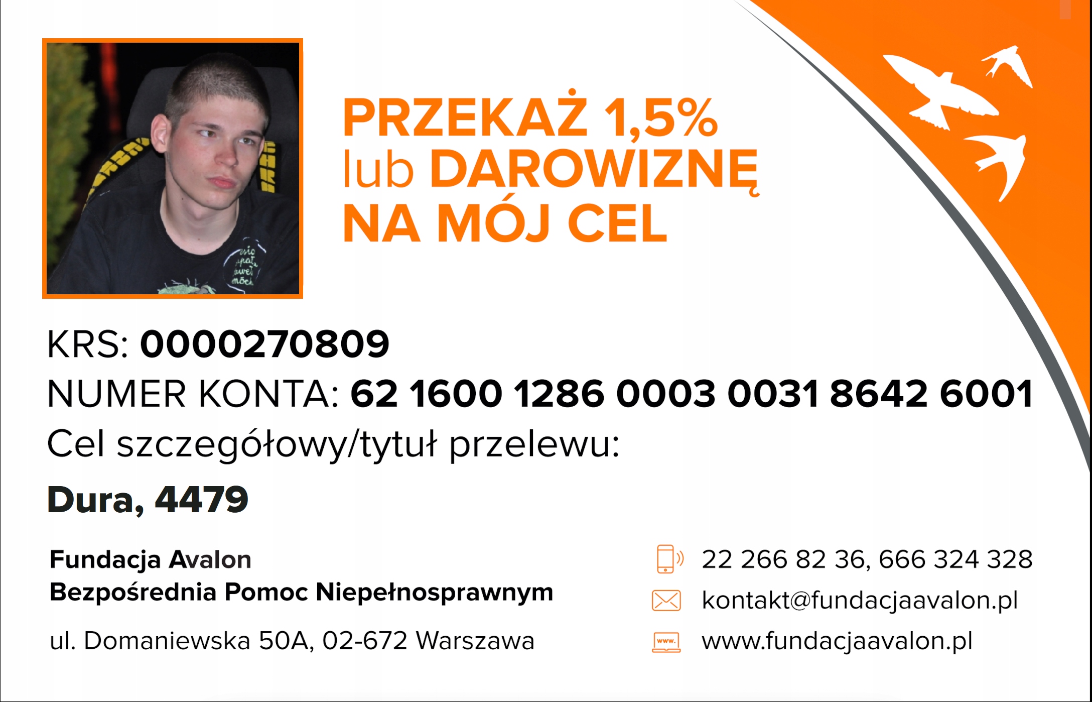 Павло бореться з нерівним ворогом – церебральним паралічем. Останні роки були постійною боротьбою за фізичну форму. Незліченні години реабілітації, спеціальне обладнання, яке потрібно було замінити, коли мій син підріс. Багато операцій, імплантована баклофенова помпа... Щомісячні поїздки до Гданська, щоб заправити ліки... Усіх витрат неможливо порахувати. Постійно з’являються нові потреби. Нещодавно щось почало відбуватися з насосом. Можливо, знадобиться ще одна операція та заміна на іншу модель. Ми частіше їздимо до Гданська. Витрати на бензин руйнують нас.