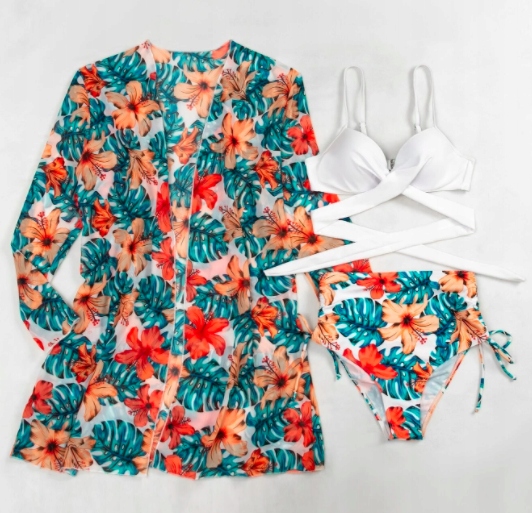 КУПАЛЬНИК БІКІНІ КІМОНО ТРОПІЧНІ КВІТИ L