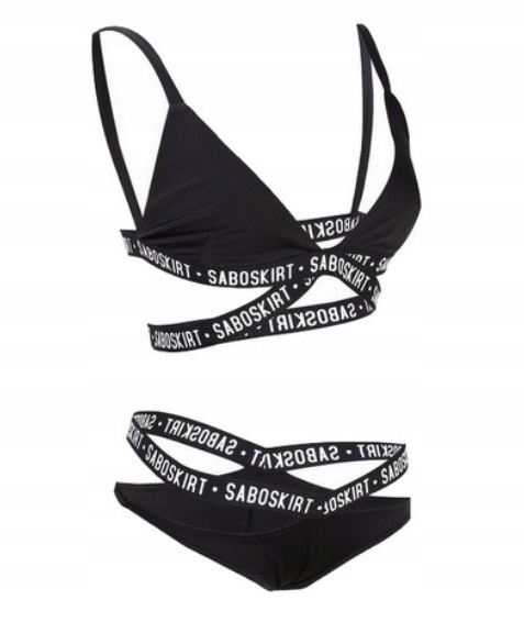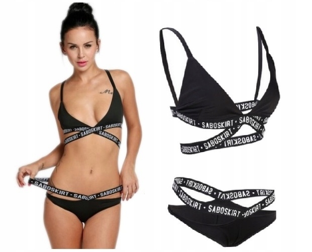 Чорний жіночий купальник-двійка на модних еластичних лямках з написом!