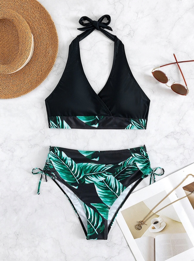 КУПАЛЬНИК З ДВОХ ЧАСТИН З ЛИСТЯМИ BOHO З ВИСОКОЮ ТАЛІЄЮ