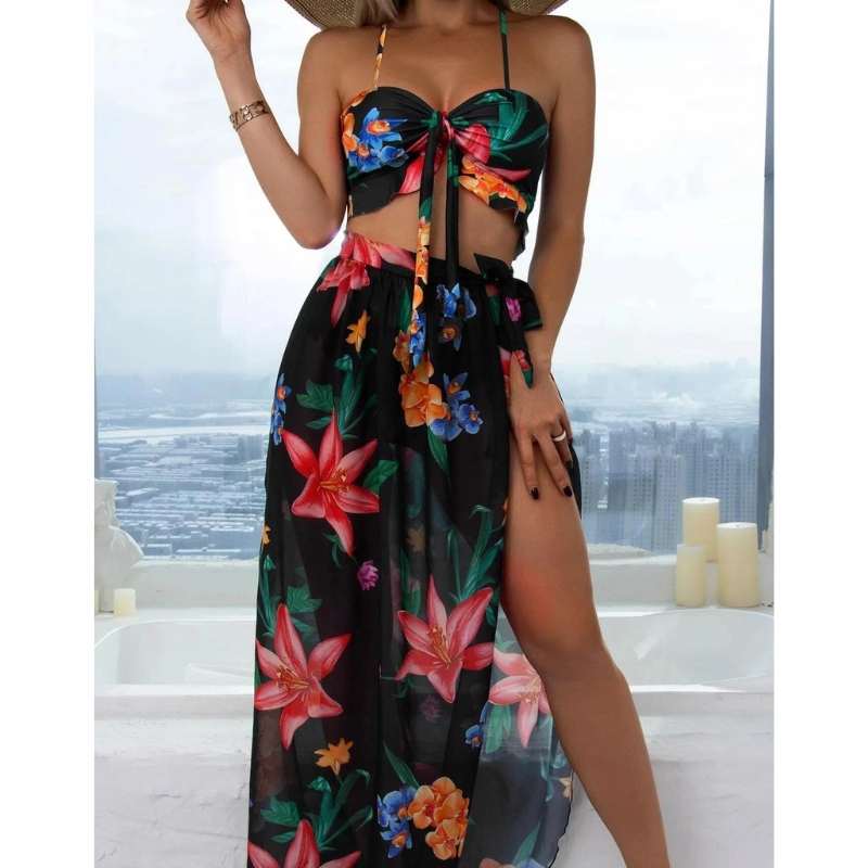ЖІНОЧИЙ КУПАЛЬНИК БІКІНІ З ДВОХ ЧАСТИН З ПАРЕО, З ВИСОКОЮ ТАЛІЄЮ
