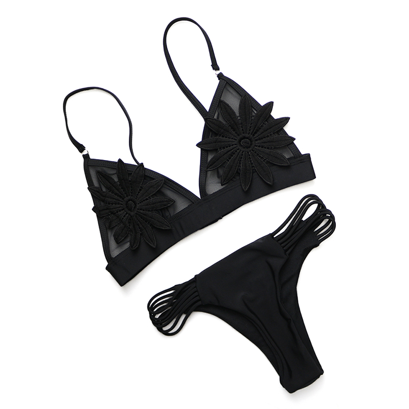 Наймодніша модель цього сезону, улюблена жінками всього світу! М'який ажурний бюстгальтер, оброблений мереживними квітами, вирізані та контурні трусики оптично подовжують ноги.