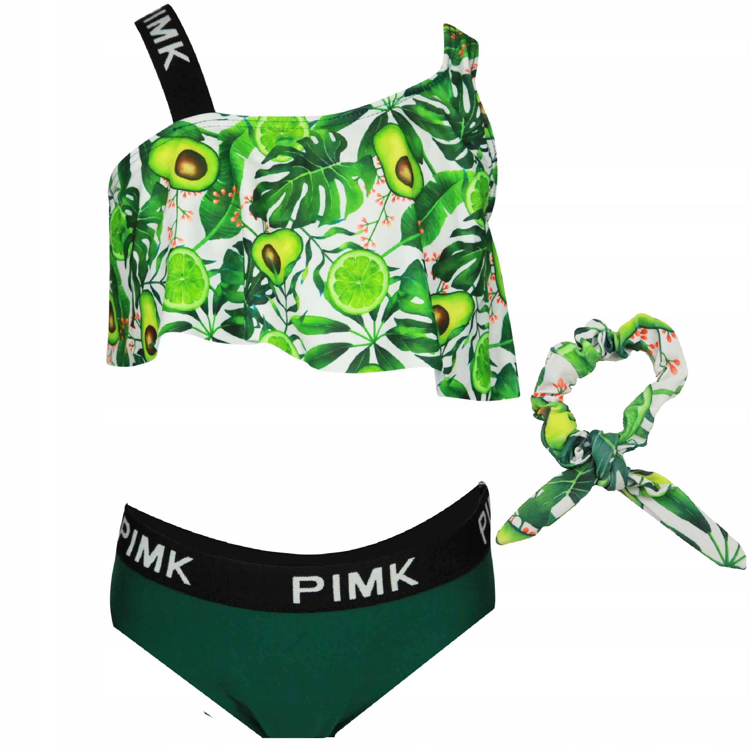 Принт у вигляді рослинного візерунка, головним героєм якого є авокадо :) Ніжний волан на ліфі. Бюстгальтер має вставки, які знімаються. Має два плеча, одне з яких у вигляді еластичної стрічки з нанесеним написом. Гумка для волосся з рослинним мотивом. Все це просто КУЧКА :)!