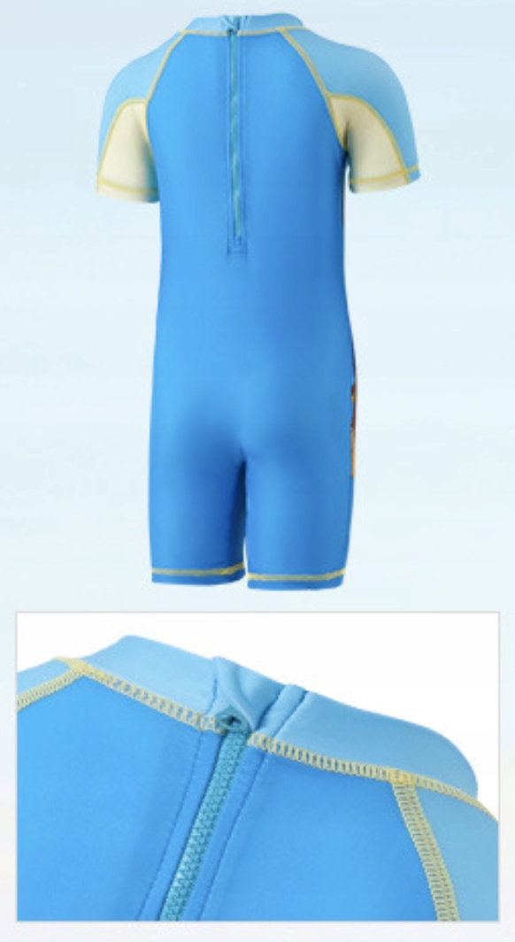 Костюм виготовлений з якісних матеріалів, він тягнеться і зручний в носінні, додатково захищає шкіру від шкідливого ультрафіолетового випромінювання.