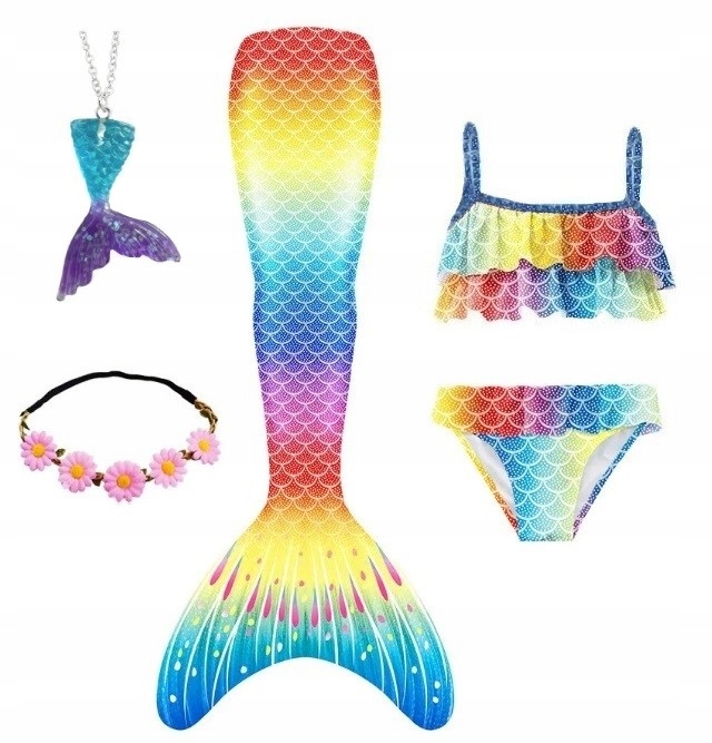 КУПАЛЬНИК ДЛЯ ДІВЧИНКИ РУСАЛКА РУСАЛКА ХВІСТ РУСАЛКИ КОСТЮМ РУСАЛКИ 5 ЧАСТИН 122 / 128 СМ (ЕТИКЕТКА 130)