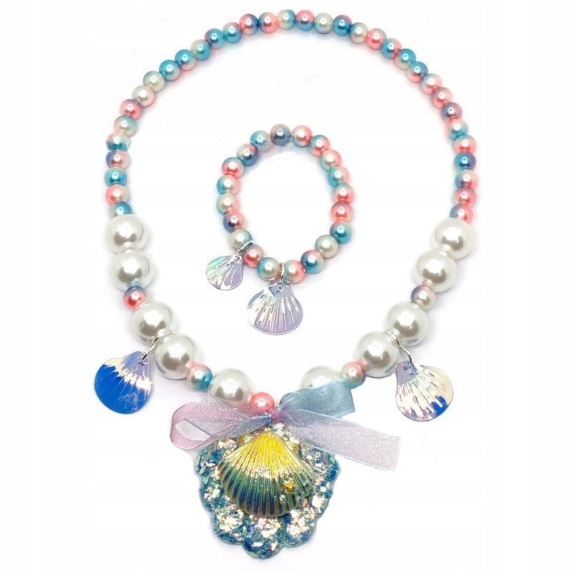 Кольє та браслет гнучкі та регулюються, тож їх можна відрегулювати відповідно до руки та шиї будь-якої дівчини. Прикраса прикрашена мушлями, що відсилають до підводного світу. Легкі, зручні, кольорові перли.
