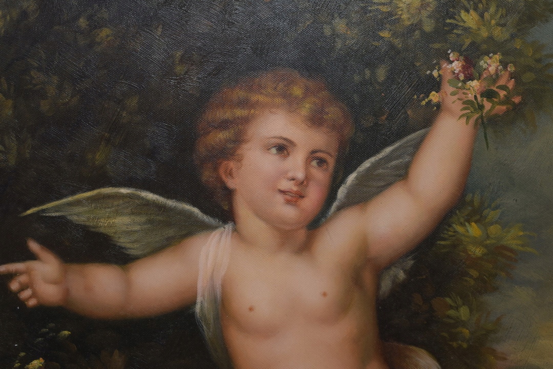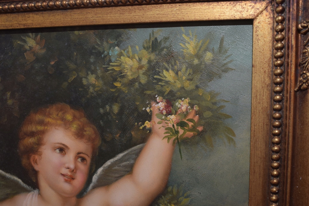 Купідон в саду - Амур-янгол - Картина маслом - Золота рамка