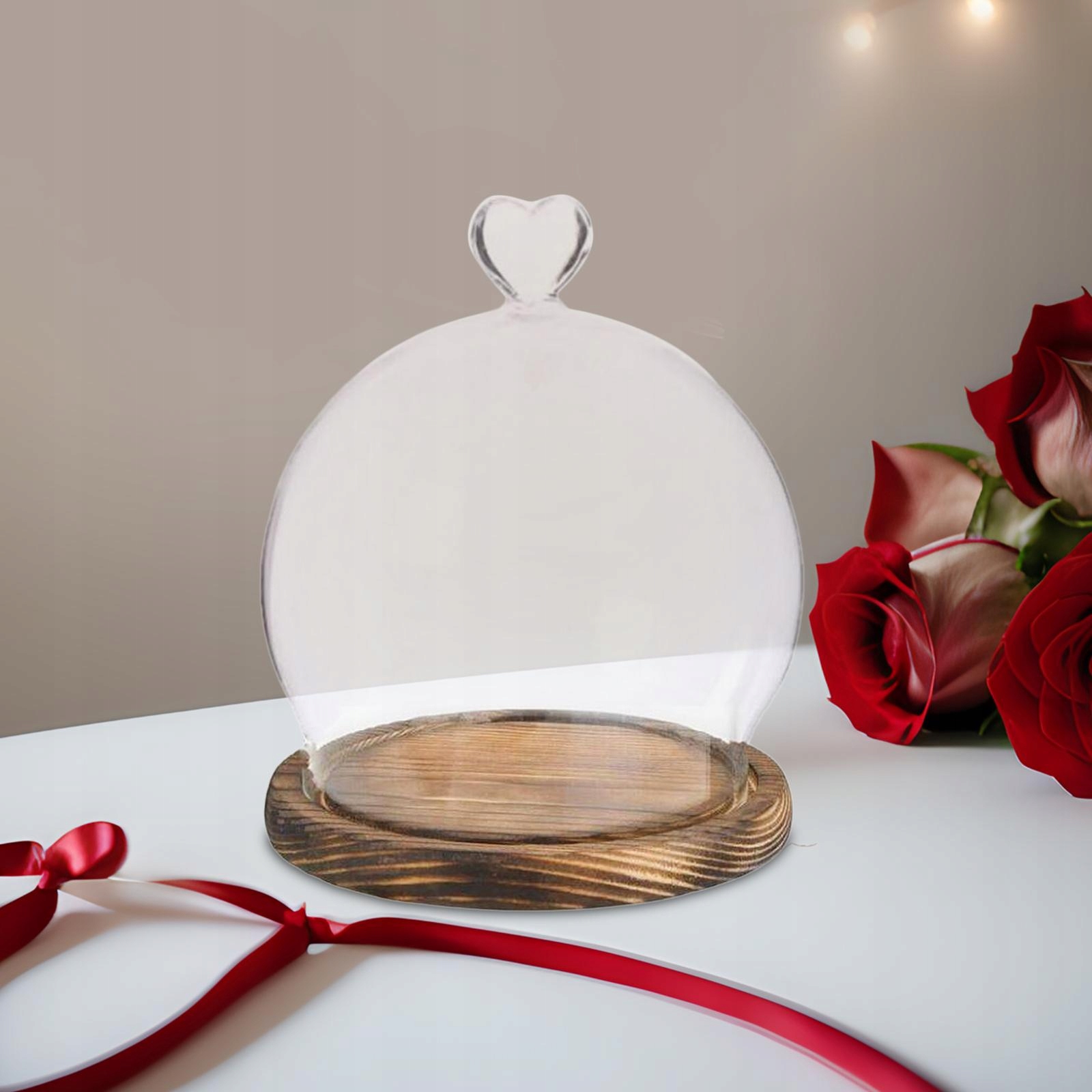 Купол дисплея з дерев'яною основою DIY Декор День Святого Валентина Прозорий коричневий