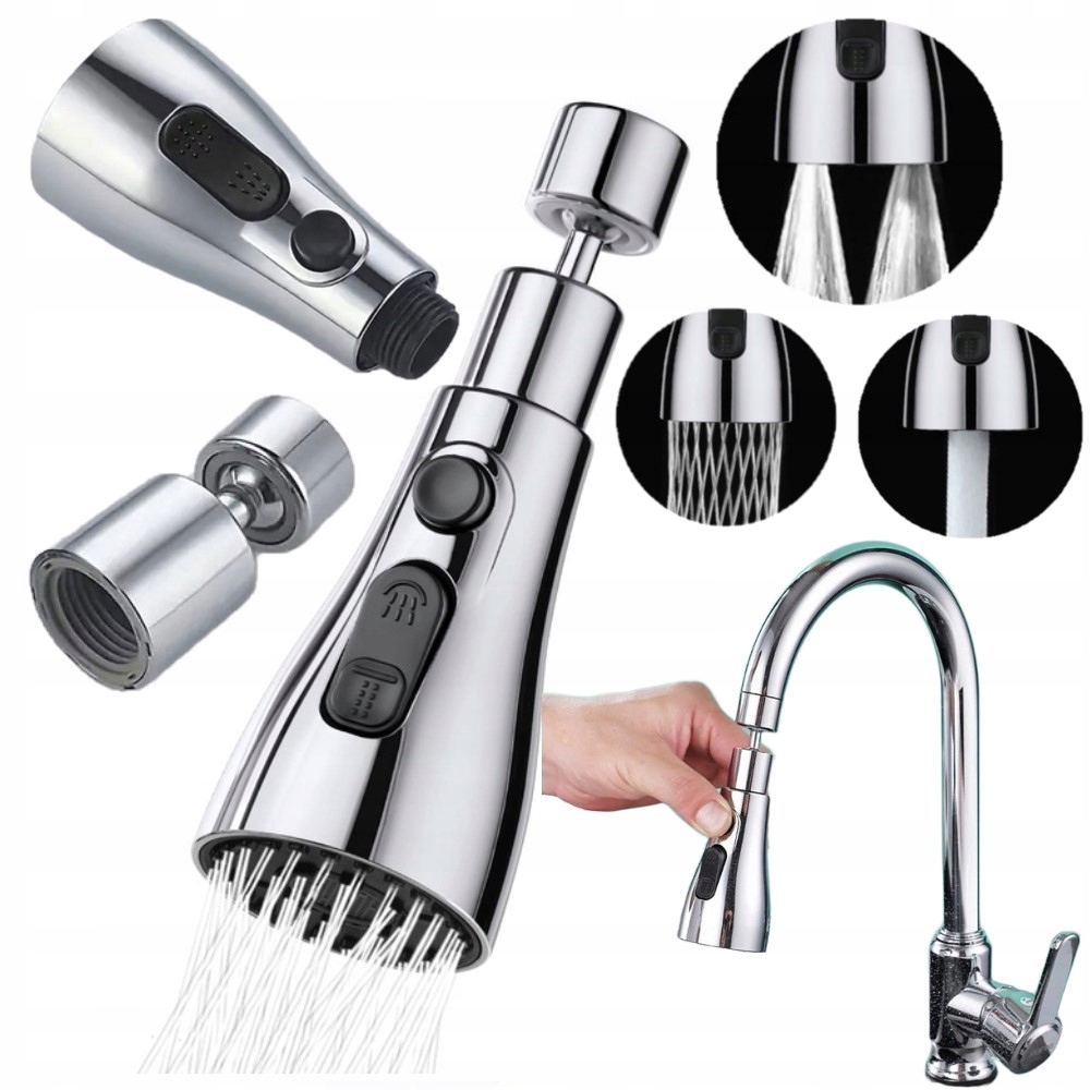 3-функціоналіст-це спеціалізований пристрій, який допоможе вам легко заощадити воду та гроші. Продукт зменшує використання води до 70%, а крім того, полегшує щоденні заходи, такі як миття посуду, завдяки рухомому голові та двом типам водного потоку - голки або провітрені.