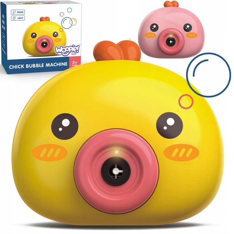 Машина для бульбашок у формі курчати від бренду Woopie - чудова іграшка для дітей. Курча грає приємну мелодію, пускаючи бульбашки, що робить розвагу ще приємнішою. Випущені бульбашки не тільки вистрілюють з високою частотою, але додатково встановлений вентилятор видуває їх ще далі. Є також ємність для рідини для бульбашок і шнурок, щоб повісити іграшку на шию.