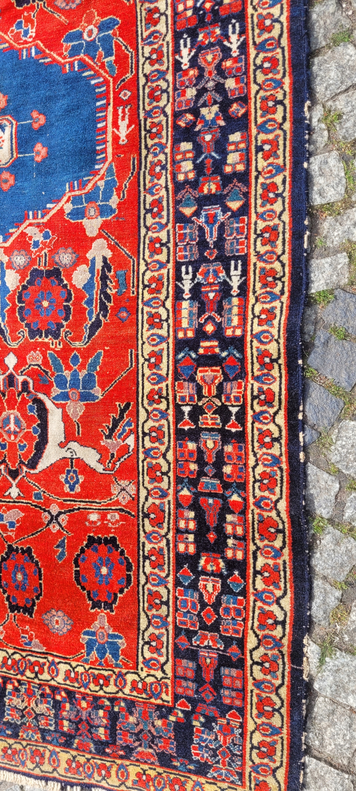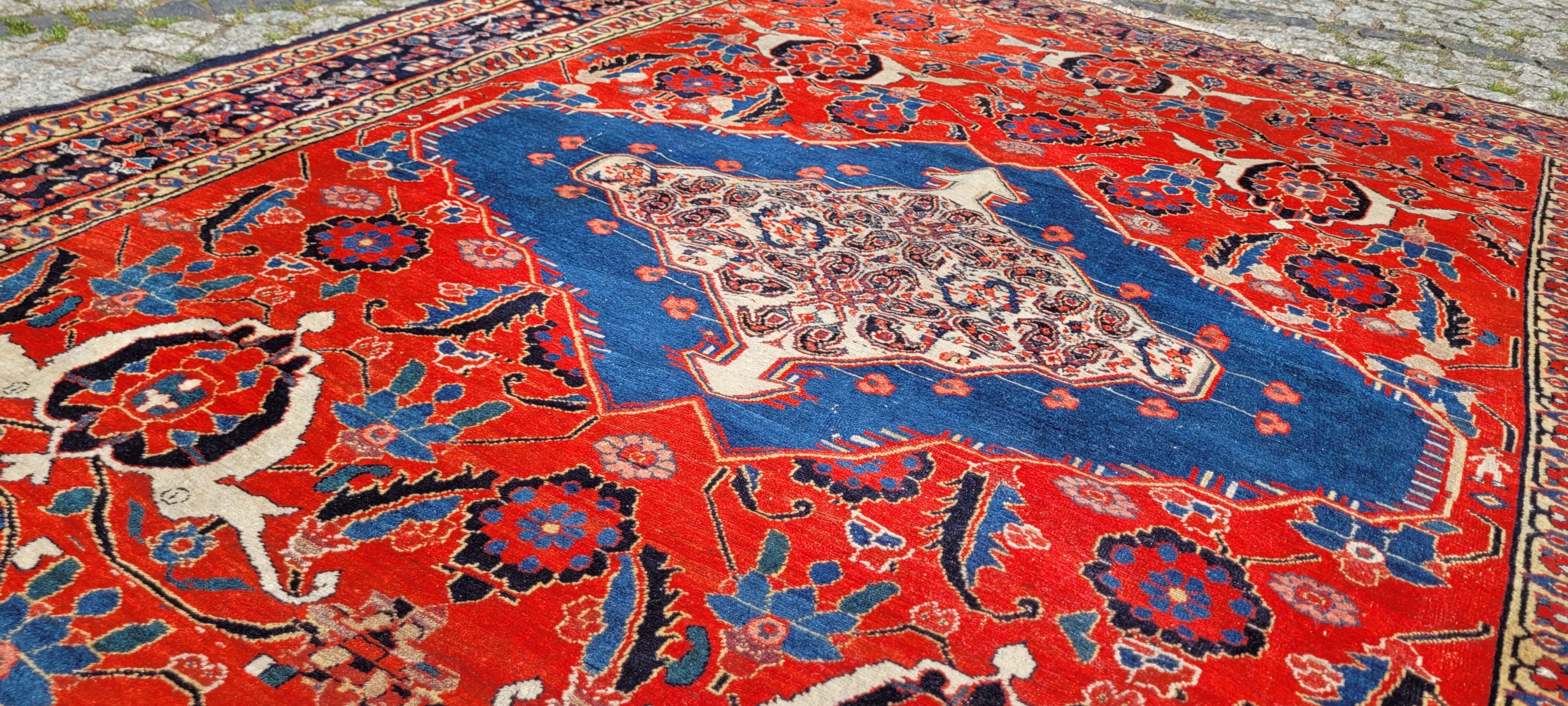 Перський, колекціонерний килим. Сплетений вручну від найвищої якості вовни. Він характеризується компактним, блискучим, приємним до сенсорного флісу та прекрасних кольорів та дизайну. Він зберігається в дуже хорошому стані, видно на знімках.