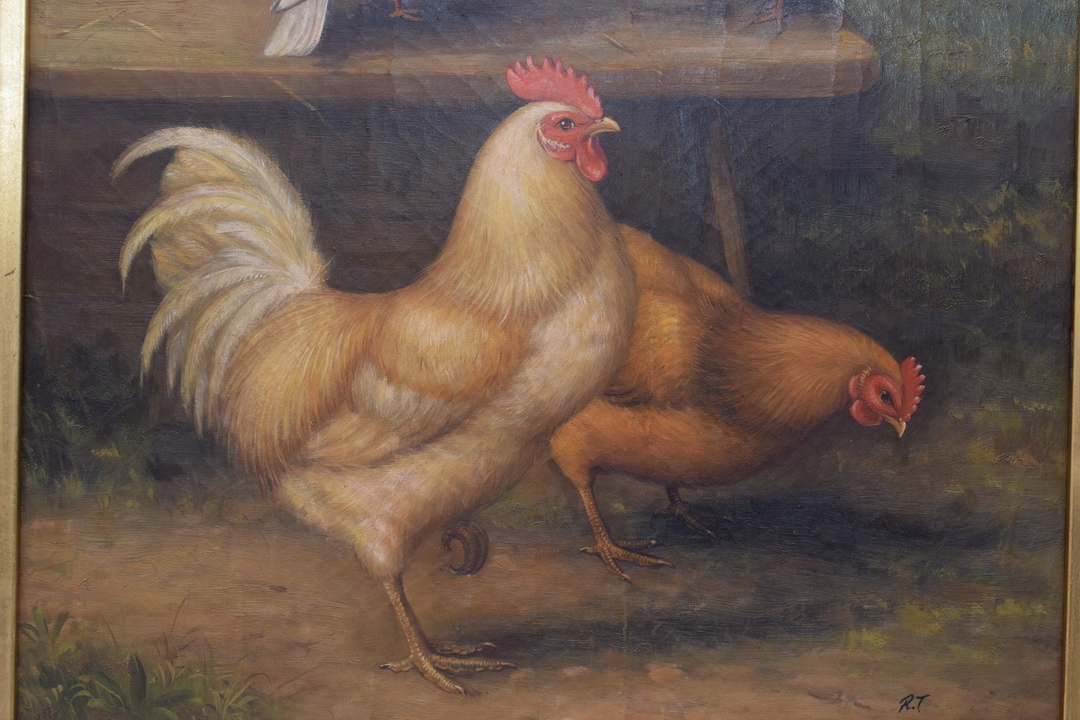 Кури, Півні - Ферма, Село, Садиба - Малюнок на дошці - Золота Рамка
