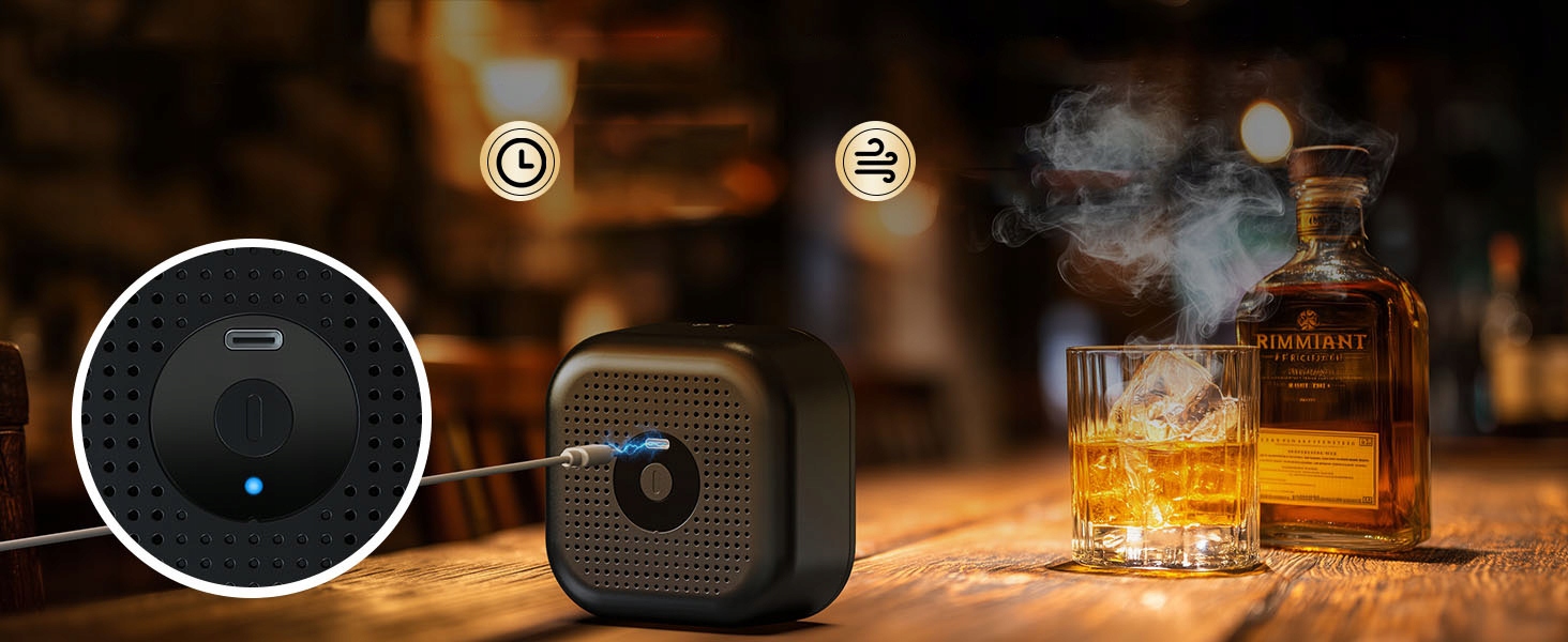 забезпечує унікальну мандрівку смаку. Так само, як коктейльна машина створює різноманітні напої, тому дозволяє персоналізувати аромат диму віскі з різними дерев’яними стружками, такими як яблуко, вишня та дубова деревина. Це збагачує смак, надаючи їм глибину та привабливість. Ідеально підходить для любителів віскі, які шукають нові продукти.
