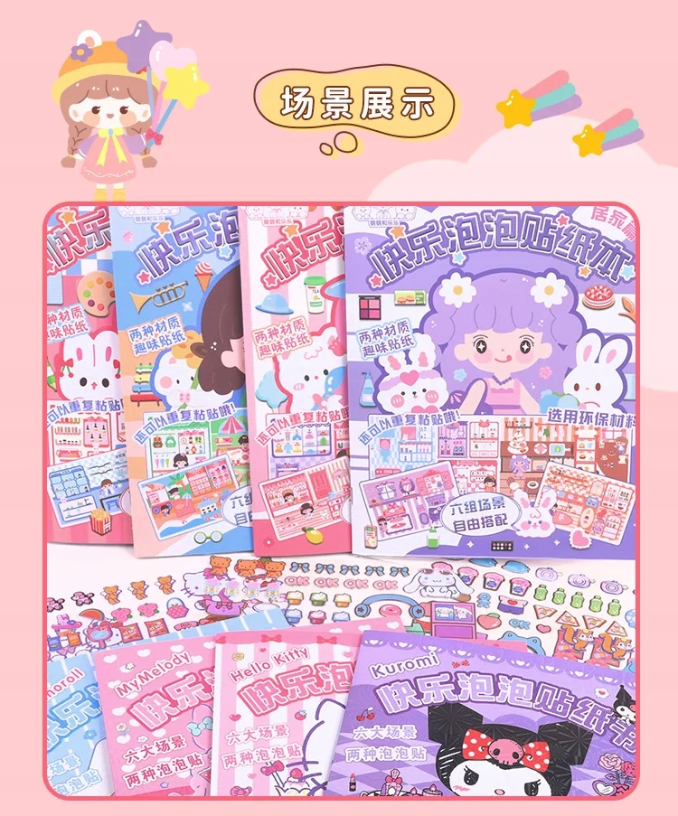 Kuromi My Melody Cinnamoroll Hellokitty Stickers Cute Student Happy Bubble