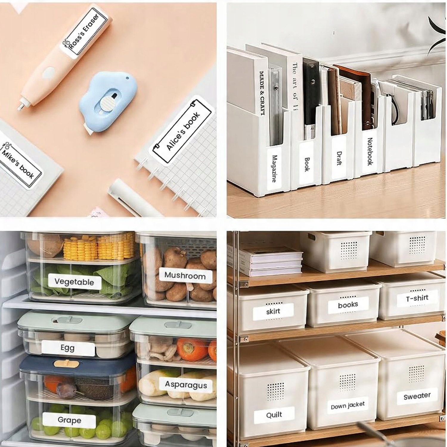 Компактний розмір і розширені функції. Обладнання для самоклеючих етикеток професійно використовується для організації домашніх кухонь. Персоналізовані етикетки для класифікації косметики, ярлики з іменами, етикетки для пляшок, дати, шкільне приладдя та офісні документи, зберігання одягу, логотипи малого бізнесу тощо. Це ідеальний подарунок для сім’ї та друзів, а також подарунок для дітей у школу.