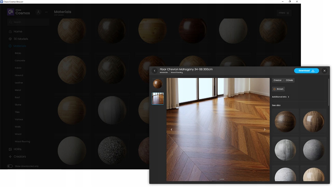 У посібнику використовується остання доступна версія V-Ray: оновлення 5.2, у якому представлено додаткові функції; серед іншого: розумні наклейки Decals або готові матеріали, імпортовані безпосередньо з бібліотеки Chaos Cosmos. Загляньте всередину, якщо хочете дізнатися більше про його можливості.