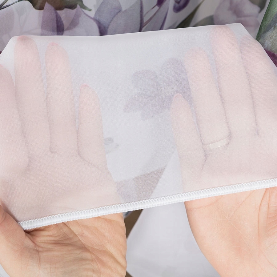 Біла вуалева штора з фіолетовими квітами Далі та свинцем, довжиною 157 см