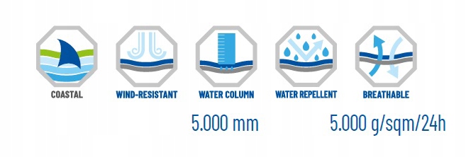 - Повітропроникність: 5000 г/кв.м/24 год.
