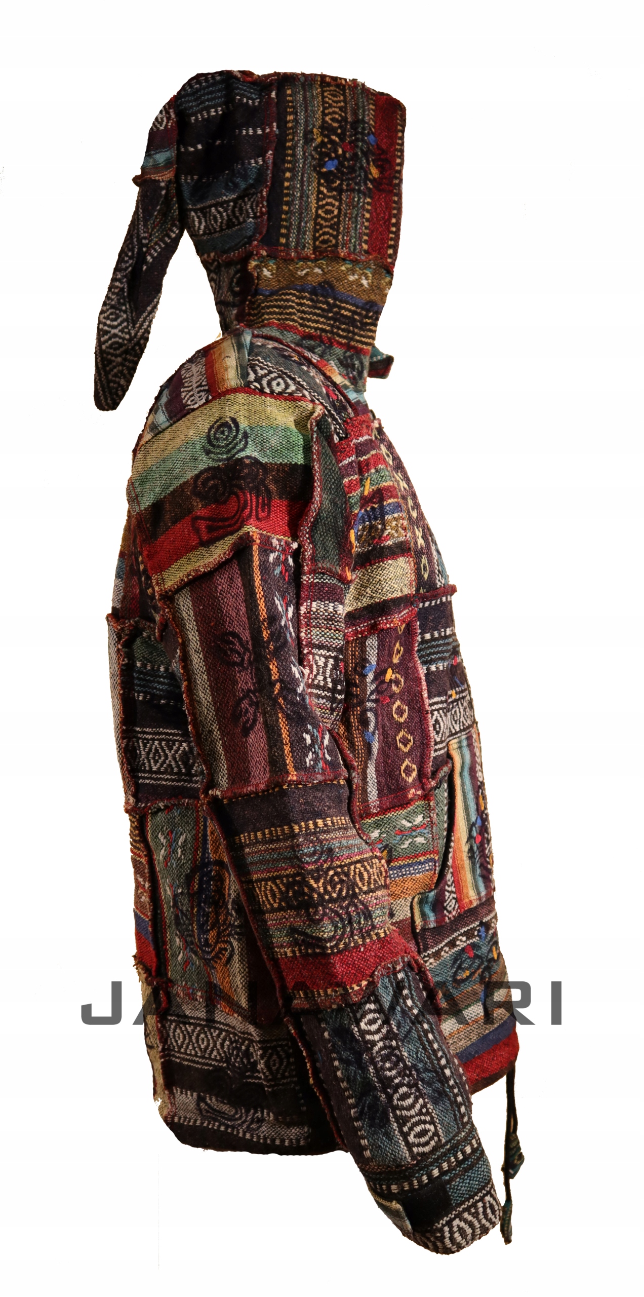 Піджак виготовлено методом печворку. Зовні виготовлено з 100% високоякісної бавовни, всередині на підкладці з флісу. Різнокольорові вкраплення на одязі роблять його надзвичайно цікавим і неодмінно підійде вам, якщо ви любите одягатися сміливо. Має капюшон досить унікальної форми. Кольорова гамма на кожній куртці унікальна. Побалуйте себе та придбайте цей продукт, щоб бути впевненим, що більше ні в кого не буде такої куртки, як у вас.