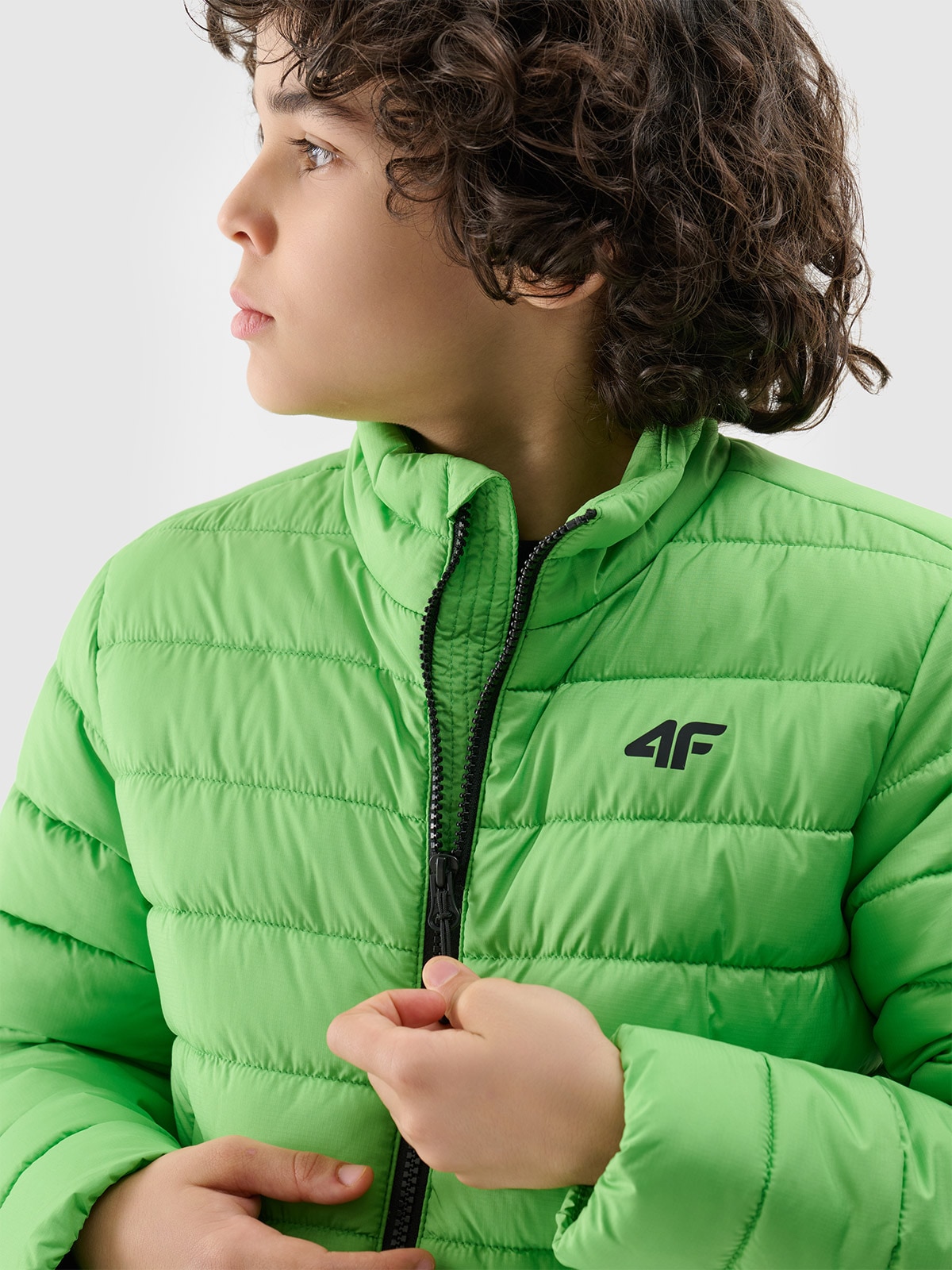 Пуховик 4F для хлопчика з легким поліестеровим утеплювачем забезпечить оптимальний комфорт. тепловий без навантаження. Він м’який і простий у догляді.