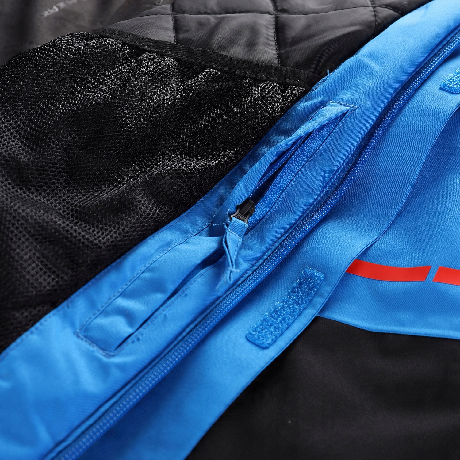 - Отвор у нижній частині куртки для кріплення лижних штанів