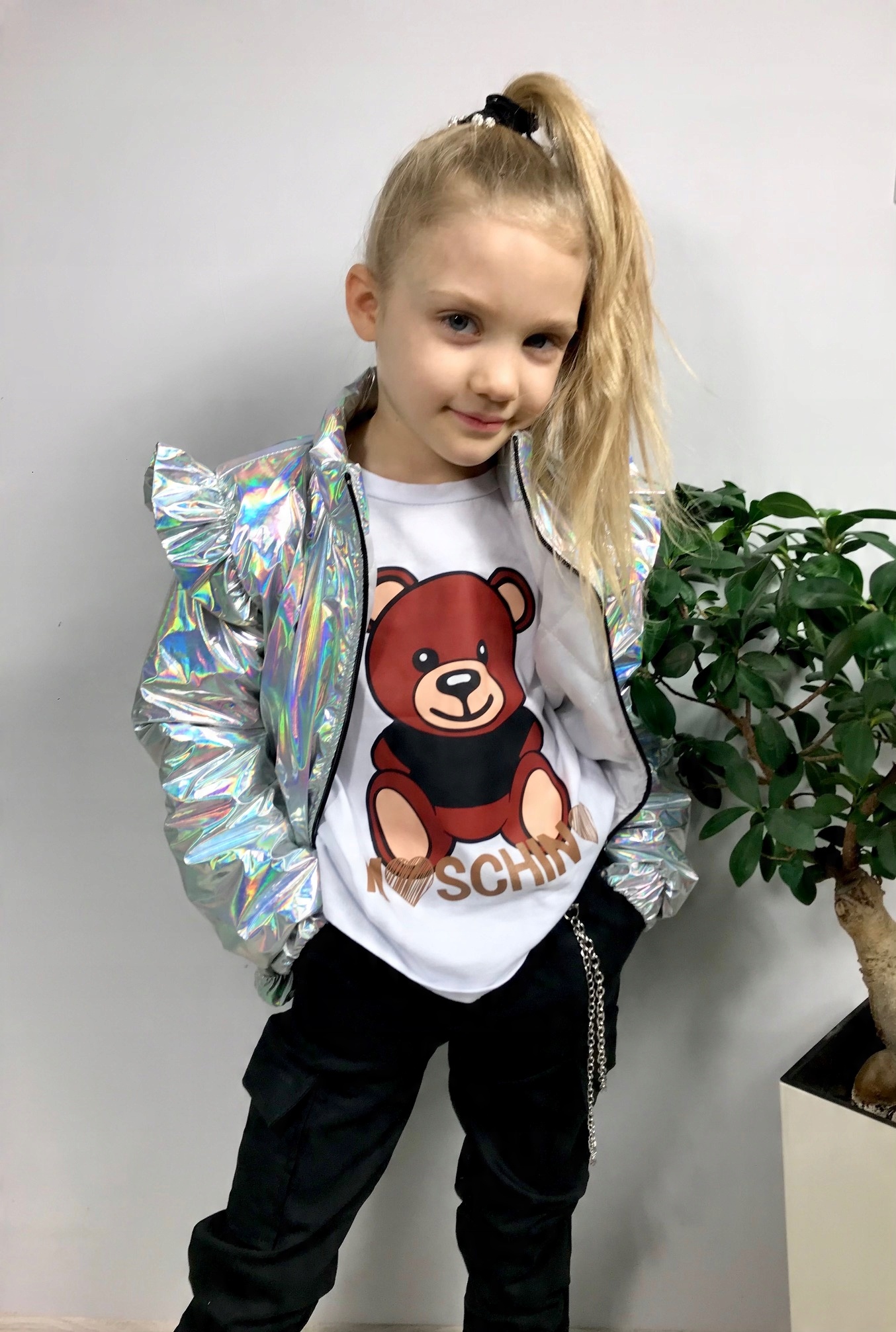 Куртка для дівчаток весна ведмідь блискітки срібло 134
