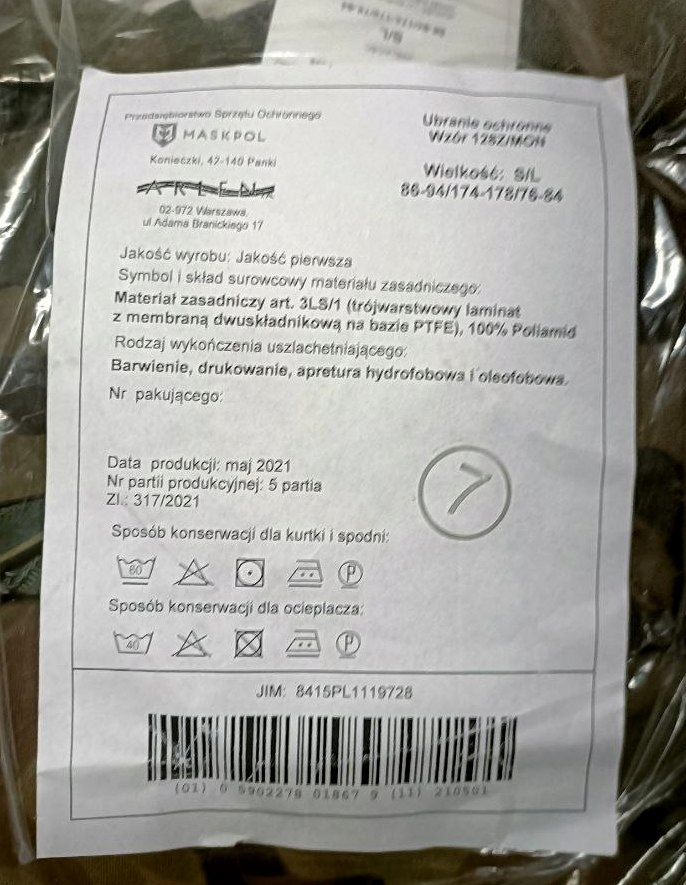 GORETEX - ЗАХИСНИЙ ОДЯГ З МЕМБРАННОЮ + WP ІЗОЛЯЦІЄЮ, МОДЕЛЬ 128Z/MON - НОВИЙ