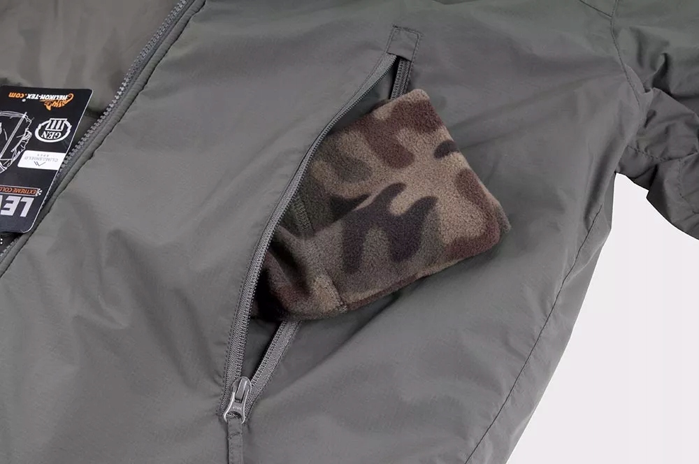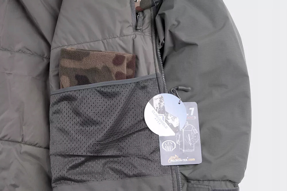 Helikon Level 7 - це легка зимова куртка, яка забезпечує теплоізоляцію та захист від морозу, вітру та легкого дощу. Використання ізоляційного наповнення Climashield® Apex™ дуже добре запобігає втраті тепла. Куртка має регульований капюшон, який зручно регулювати, не виймаючи рук з кишень, за допомогою шнурків, захованих у нагрудних кишенях. Куртка має п’ять кишень, включаючи дві нагрудні кишені з флісовою підкладкою, які захищають ваші руки від обмороження.